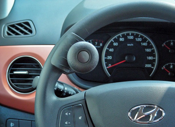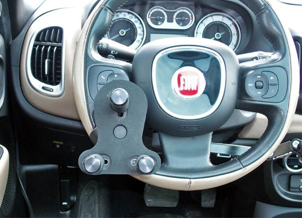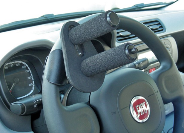 Este accesorio, ajustable a las necesidades del cliente, permite la rotación del volante sirviéndose de la fuerza de la muñeca en lugar de la mano.