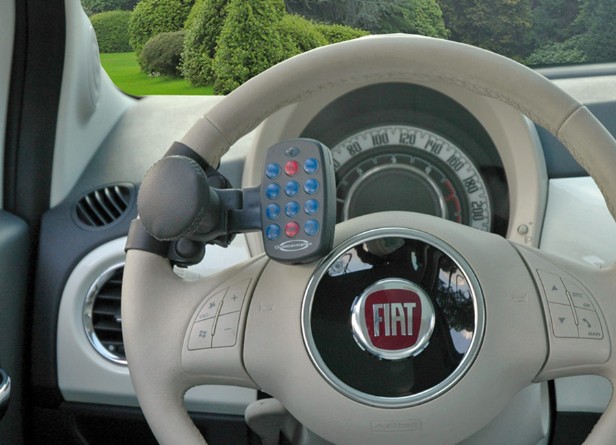 Un pequeño teclado colocado a la derecha del volante, cerca del mando del limpiaparabrisas, permite accionar las luces, intermitentes y el claxon con los dedos de la mano derecha, sin abandonar el volante.
